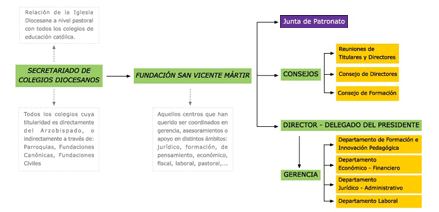 Para el cumplimiento del fin fundacional, se cuenta con la actual estructura que intenta dar servicio a los Colegios Diocesanos existentes en la Diócesis de Valencia.