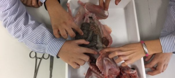Esta setmana hem començat amb les disseccions del projecte “Entenent la Natura”. Si les setmanes passades estudiàvem els amfibis, els rèptils, els peixos i els ocells (encara falten les rapinyaires), hui hem estat gaudint, amb els cinc sentits, del conill per veure més de prop, i de manera real, com som els mamífers. Hem aprés com són els seus òrgans: cor, pulmons, estómac, intestins, fetge (amb la fel)… així com les seues funcions.