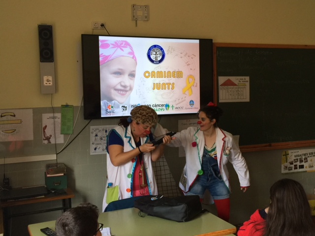 Hui ens han visitat els amics de PayaSOSpital per agrair-nos haver venut 1.200 euros de calendaris solidaris i com a preludi del concert de Dani Miquel, que serà demà, Dia Mundial del Càncer Infantil, a les 18 hores al teatre Salesians d’Alcoi. Han passat per les classes de cinqué de Primària, hem deixat de treballar uns minuts i ha estat una estona molt divertida. Quina manera més bonica que donar les gràcies!