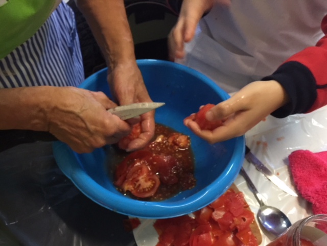 Fer activitats escolars amb els nostres iaios és força gratificant, i més encara, si aquestes són tradicionals i els traslladen a la seua infància. Perquè és molt bonic recordar el temps on ajudaven els pares a preparar l’hivern, com ho fan les formiguetes. Doncs aquesta setmana nosaltres hem viscut a classe de la mateixa manera que ho feien als masos, ja que els alumnes de cinqué hem fet conserva de tomaca per aprofitar l’hort al màxim i gaudir d’un temps en família.