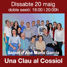 - Mañana, sábado 20 a las 18 horas -primera actuación- y a las 20:30 horas -segunda actuación-, en el teatro Principal tendrá lugar el fantástico sainete «Una clau al cossiol» de Ana María García interpretado por el Cuadro Artístico de la Asociación de San Jorge.