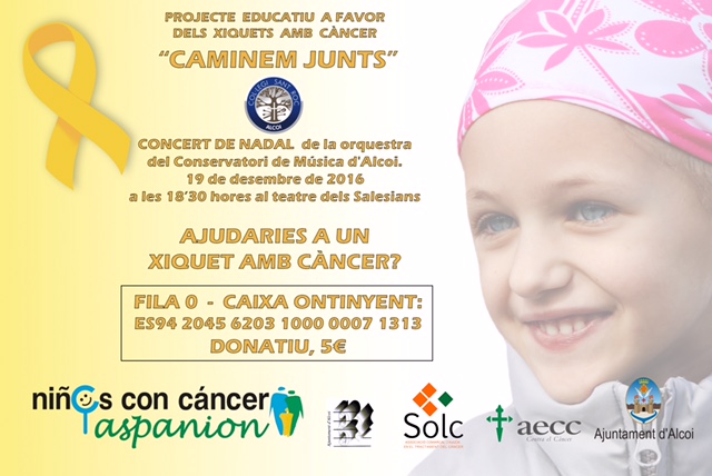 El beneficio íntegro de todas las actuaciones se destinará a las asociaciones locales SOLC y AECC Alcoy, pero principalmente a la autonómica ASPANION, asociación de niños con cáncer, y al HOSPITAL LA FE de Valencia, pionero mundial en investigación contra esta enfermedad.