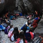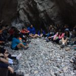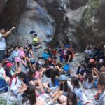 Ayer jueves fue el día más intenso y emocionante del campamento. Los niños se bañaron en el río, realizaron talleres donde aprendieron, por ejemplo, que una especia tan común como el gorrión, está a punto de ponerse en peligro de extinción. Por la tarde fue lo más divertido. Cargaron las mochilas, cogieron los frontales y partieron hasta el estrecho de Cascajar bajo la imponente mirada del Peñascabia. Se trata de un lugar maravilloso, por medio del cual, podíamos entrar hasta las mismísimas entrañas de la montaña. Allí realizamos una inolvidable asamblea, en la más profunda oscuridad de la noche, dirigida por Marcos Pla que nos hizo a todos reflexionar. Al acabar empezamos a entrar por el estrecho, pero no pudimos seguir caminando ya que había un cadáver de ciervo que al parecer había caído desde arriba de la gruta. Sobre la 1 de la madrugada llegábamos a nuestras tiendas para dormir.