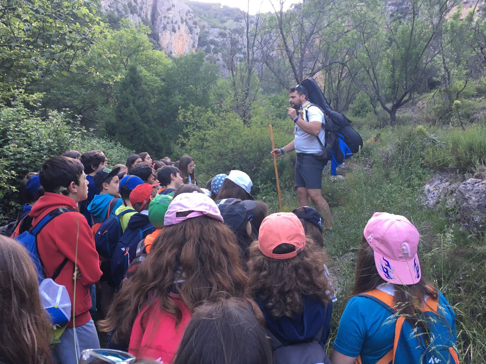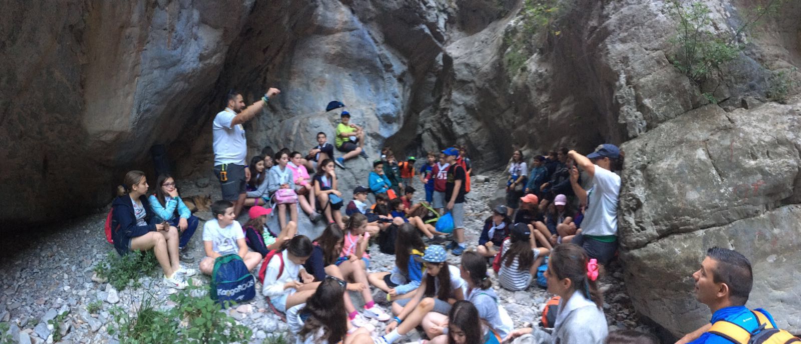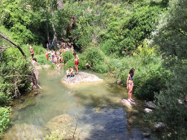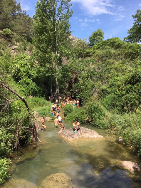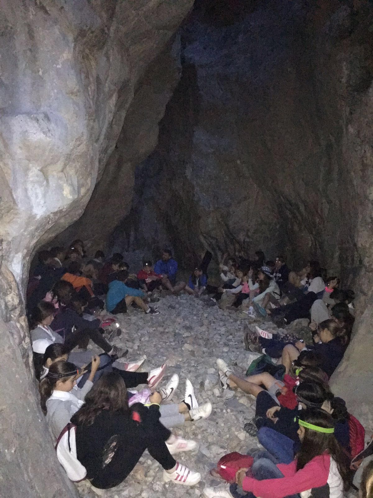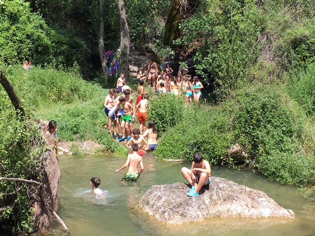 Ayer jueves fue el día más intenso y emocionante del campamento. Los niños se bañaron en el río, realizaron talleres donde aprendieron, por ejemplo, que una especia tan común como el gorrión, está a punto de ponerse en peligro de extinción. Por la tarde fue lo más divertido. Cargaron las mochilas, cogieron los frontales y partieron hasta el estrecho de Cascajar bajo la imponente mirada del Peñascabia. Se trata de un lugar maravilloso, por medio del cual, podíamos entrar hasta las mismísimas entrañas de la montaña. Allí realizamos una inolvidable asamblea, en la más profunda oscuridad de la noche,  dirigida por Marcos Pla que nos hizo a todos reflexionar. Al acabar empezamos a entrar por el estrecho, pero no pudimos seguir caminando ya que había un cadáver de ciervo que al parecer había caído desde arriba de la gruta. Sobre la 1 de la madrugada llegábamos a nuestras tiendas para dormir.