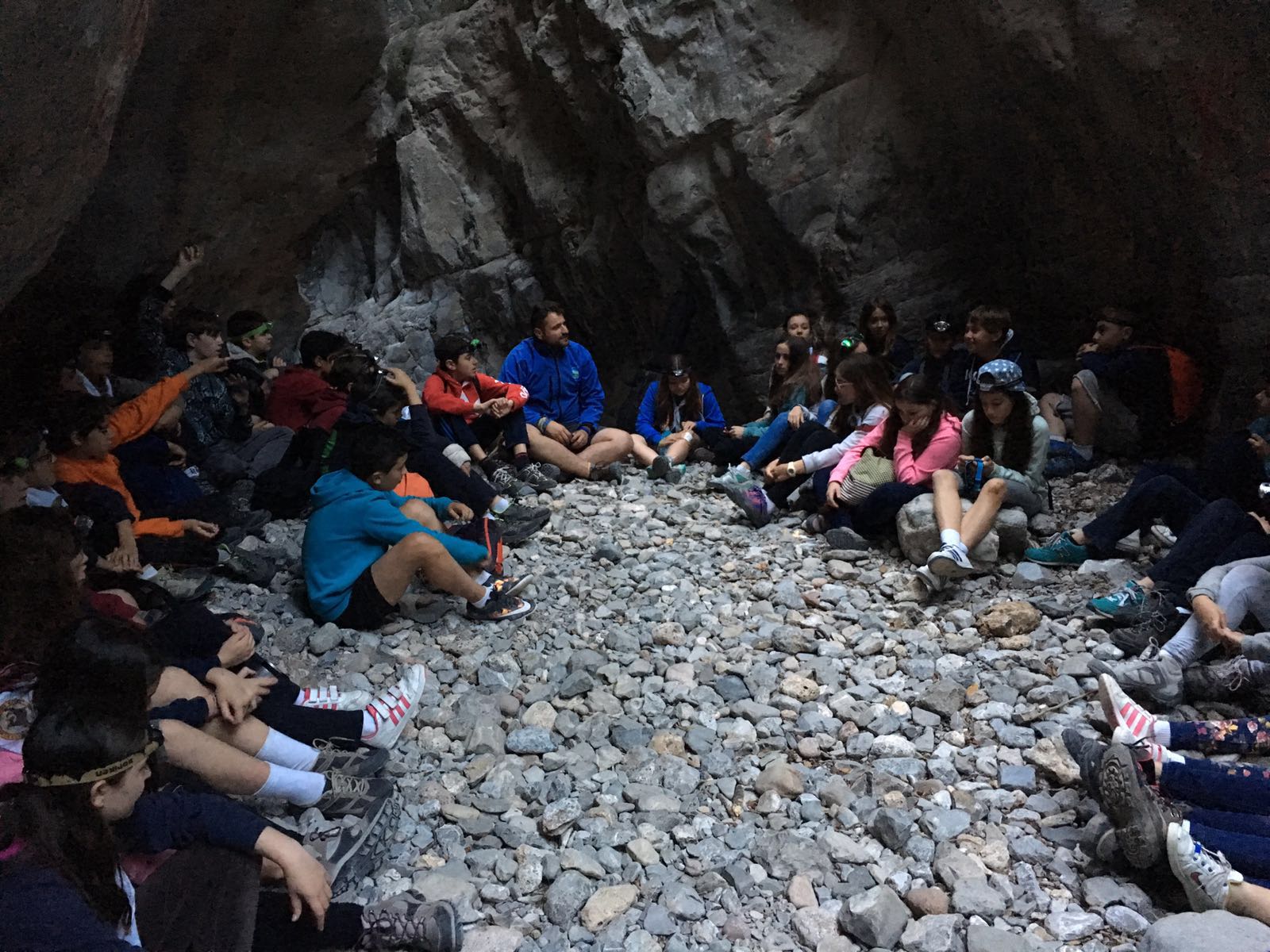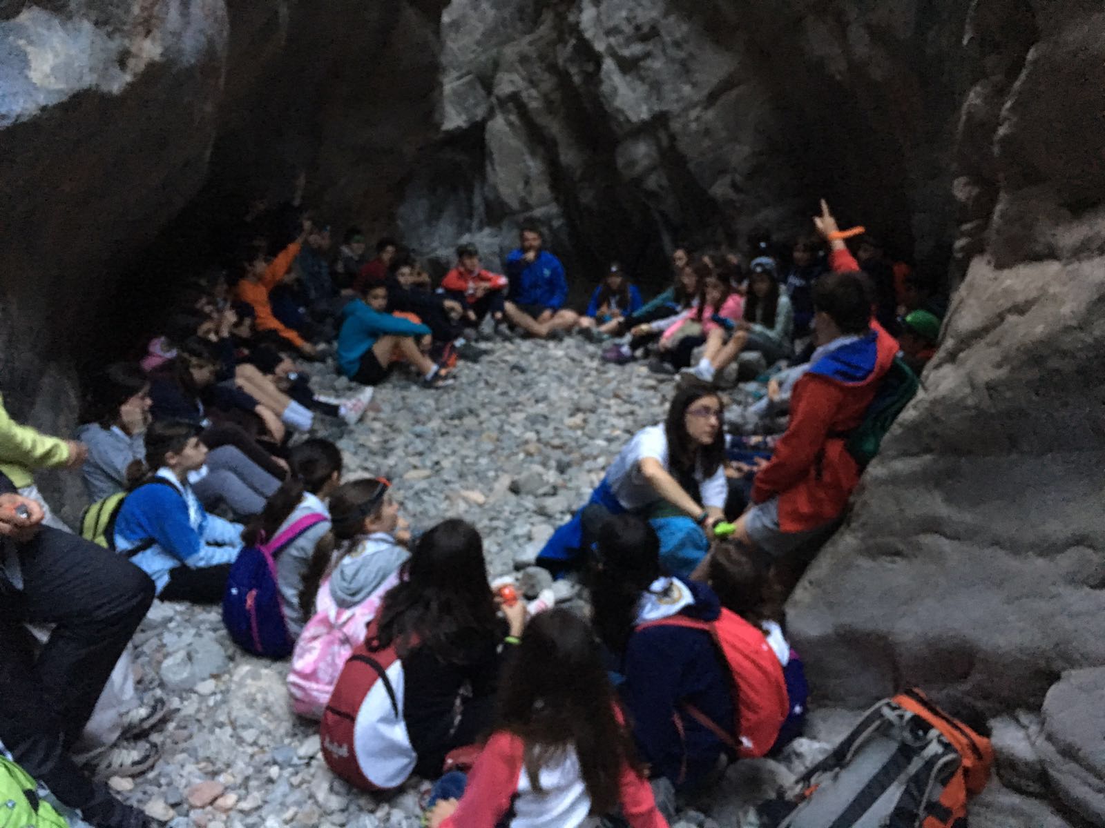 Ayer jueves fue el día más intenso y emocionante del campamento. Los niños se bañaron en el río, realizaron talleres donde aprendieron, por ejemplo, que una especia tan común como el gorrión, está a punto de ponerse en peligro de extinción. Por la tarde fue lo más divertido. Cargaron las mochilas, cogieron los frontales y partieron hasta el estrecho de Cascajar bajo la imponente mirada del Peñascabia. Se trata de un lugar maravilloso, por medio del cual, podíamos entrar hasta las mismísimas entrañas de la montaña. Allí realizamos una inolvidable asamblea, en la más profunda oscuridad de la noche, dirigida por Marcos Pla que nos hizo a todos reflexionar. Al acabar empezamos a entrar por el estrecho, pero no pudimos seguir caminando ya que había un cadáver de ciervo que al parecer había caído desde arriba de la gruta. Sobre la 1 de la madrugada llegábamos a nuestras tiendas para dormir.