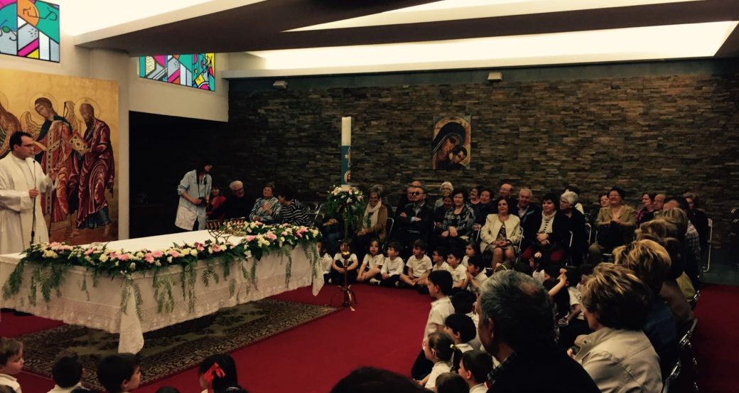 Pues los invitamos a venir al cole y ellos con mucha ilusión acudieron. Nos reunimos en la Capilla y después nos los llevamos a nuestras aulas, donde les hicimos un pequeño homenaje con poesías, canciones, bailes, piropos y un detallito que les hicimos con mucho AMOR.
