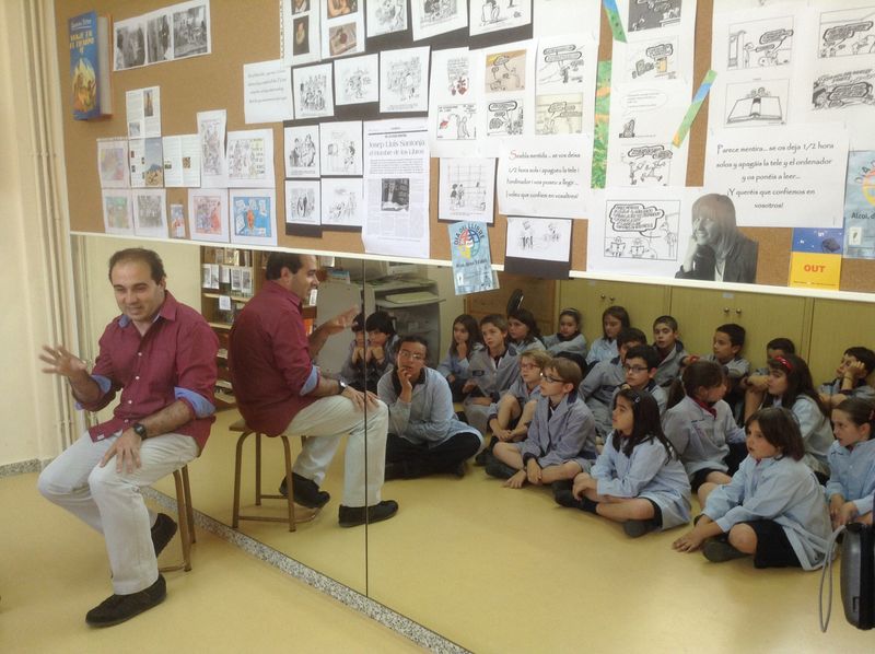 Pot ser, el més màgic de la vesprada ha estat, quan ens ha contat còm es va iniciar amb l’ecriptura. Des de ben xicotet escrivia i dibuixava els seus relats i còmics. La seua avia va ser una peça molt important per a convertir-se en un apassionat de la lectura, i com a anècdota, ens ha contat que va viure moltíssims anys, i fins l’ultim moment va estar contant-los contes.