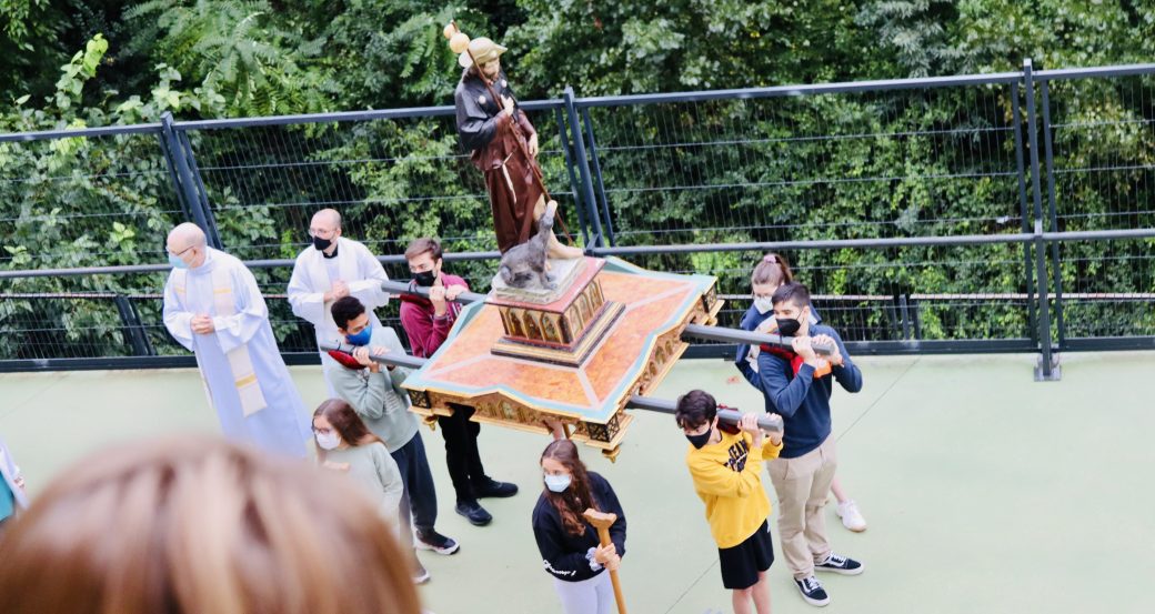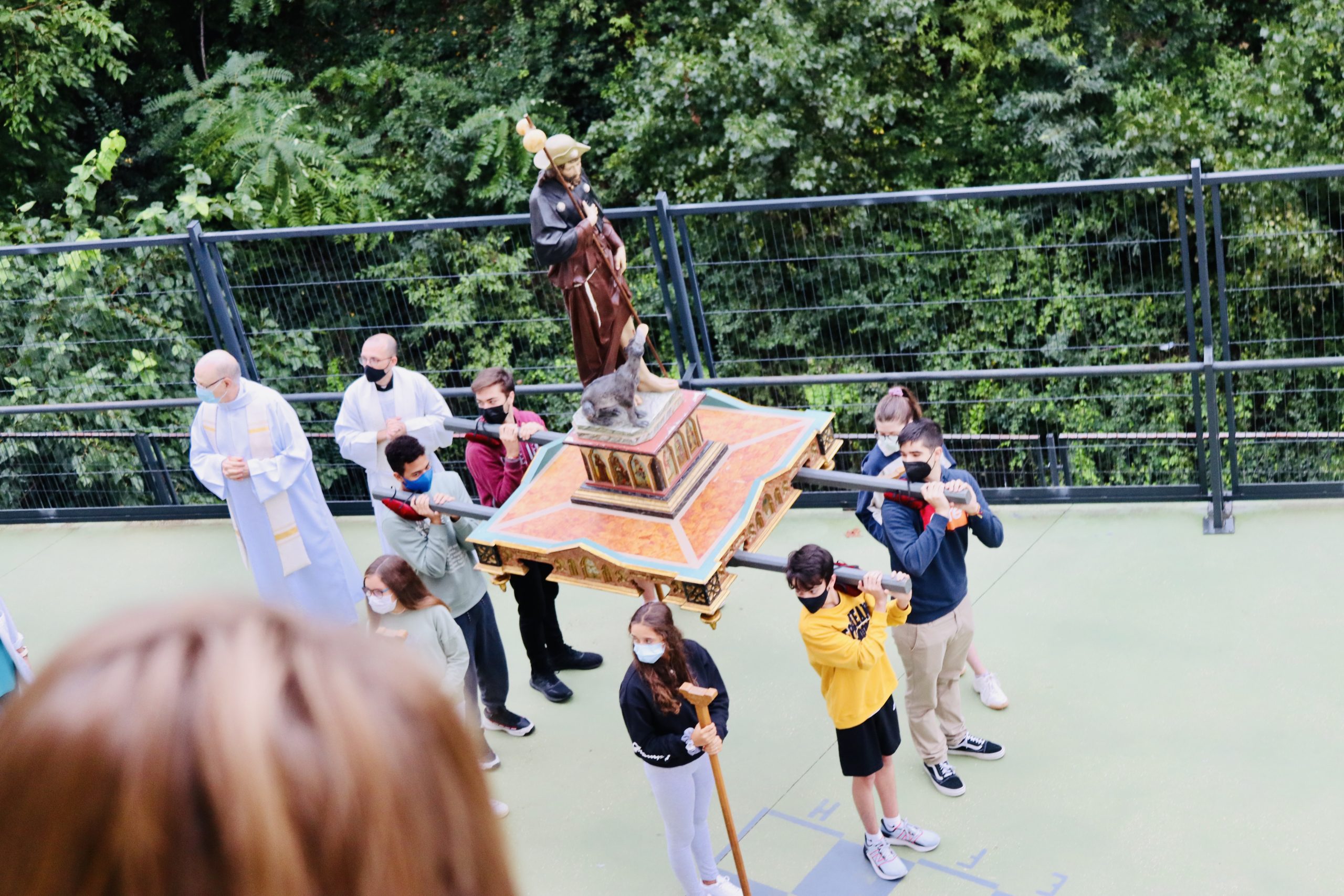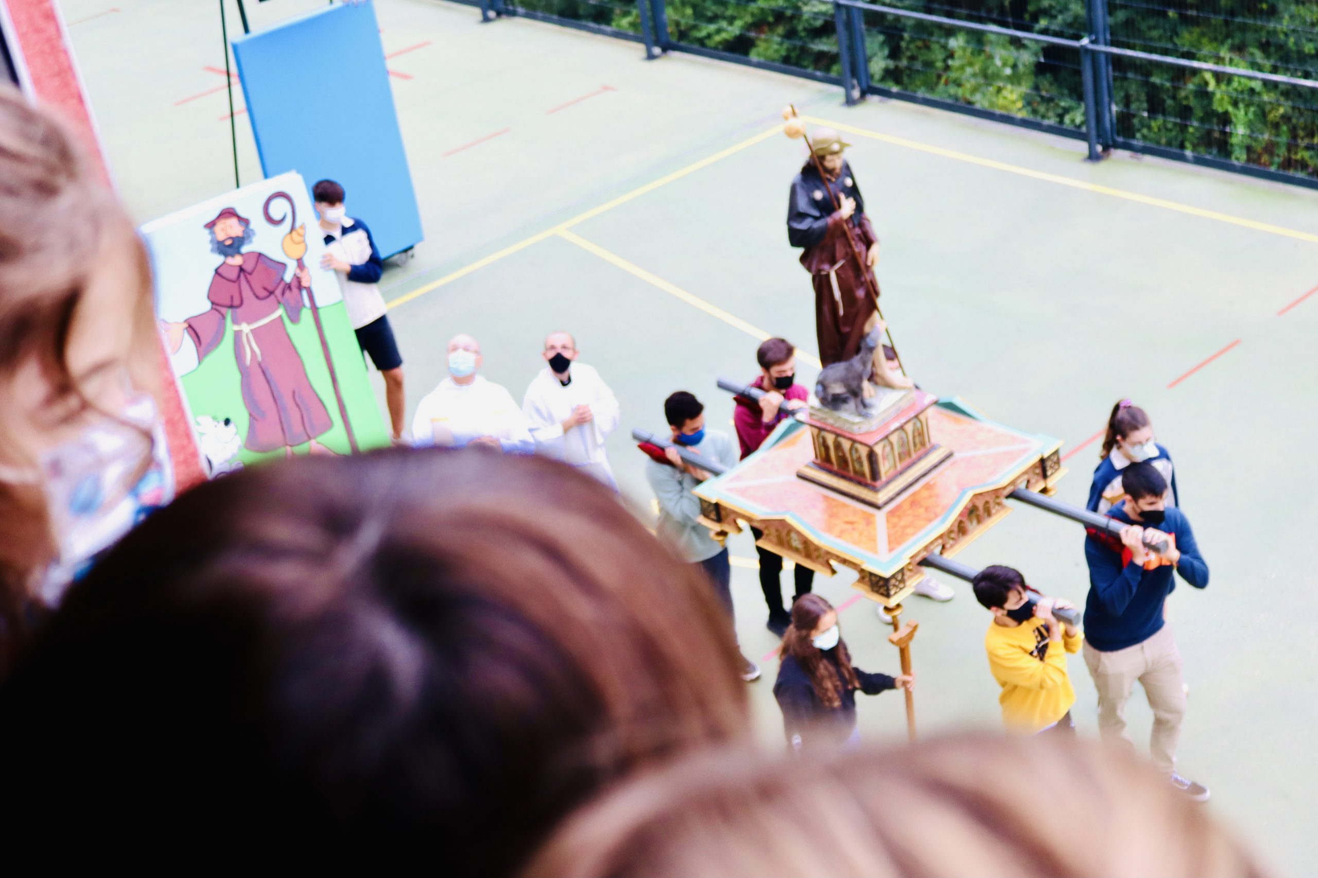 La imatge de Sant Roc pelegrí, els farolets, xirimites, el repicar de campanes, el nostre rector, tot ha embriagat l’ambient perquè, malgrat les restriccions i mesures de prevenció sanitàries, poguérem retre homenatge al Sant, el nom del qual, porta el Col·legi.