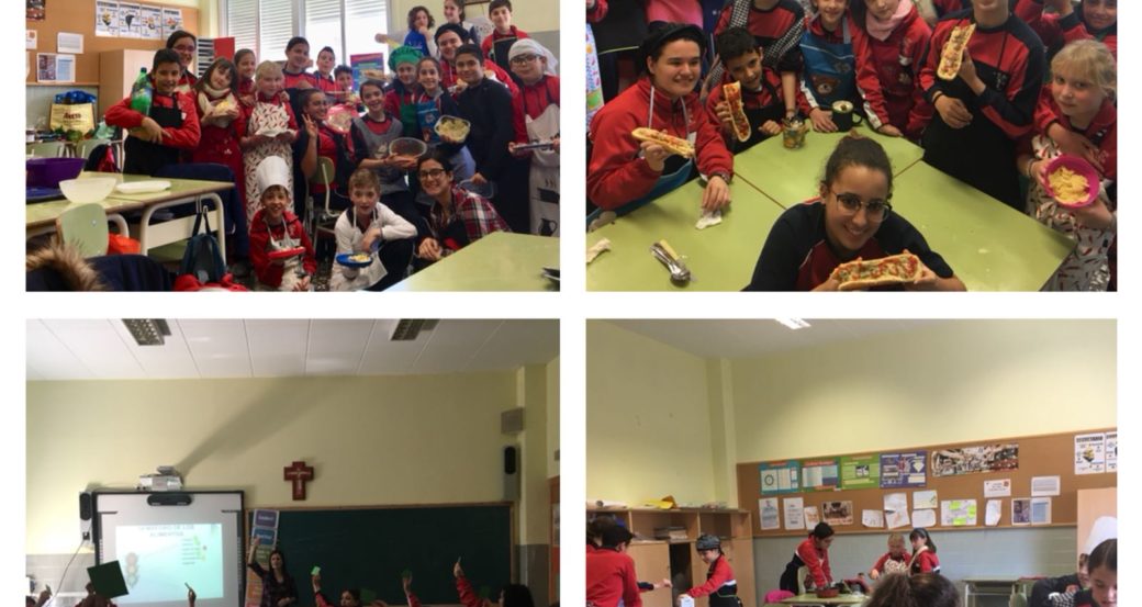 Cada día teníamos un reto a conseguir y todo por equipos. El primer día, tuvimos que elaborar nuestro propio postre y creamos cosas riquísimas como pinchos de fruta con chocolate derretido, batidos, brownies… El segundo día, elegimos 4 recetas para poder almorzar y una de las que más triunfó fue en pan pizza. Ese mismo día por la tarde, vino una enfermera y nos enseñó qué alimentos podíamos comer todos los días y qué alimentos debíamos evitar para poder llevar una dieta saludable. Fue una charla llena de actividades y diversión. El tercer y último día fue un día especial ya que cada grupo elaboró su propio menú y nos quedamos a comer en el colegio, todos juntos. Cocinamos diferentes platos (pasta, patatas, ensaladas, arroces…).